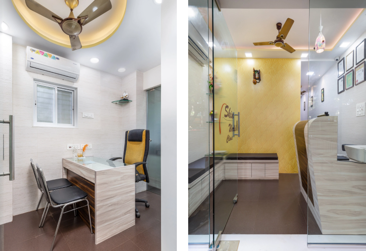 Effective planning of a very tight space by carving out multiple interlinked Consultation Rooms for Dr. Hetal Pathak, a Dermatologist and Dr. Aditya Pathak who is an Orthopaedic Surgeon.